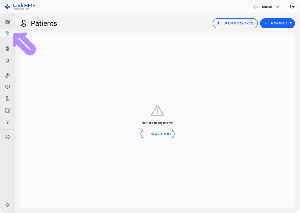 - Click the Upload CSV/Excel button to import the existing patient list.